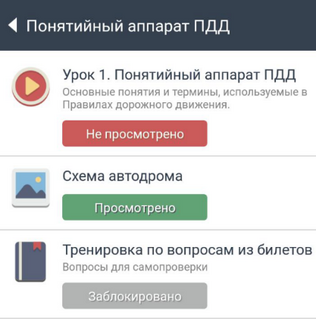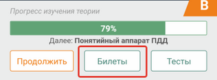 Вы можете открыть сразу весь сборник вопросов, разбитый по темам и билетам. Для этого на главном экране приложения нажмите кнопку «Билеты».