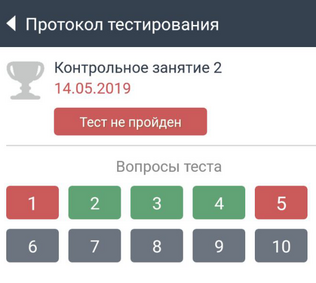 После тренировки вы можете открыть список вопросов, в которых была допущена ошибка, по кнопке Ошибки.